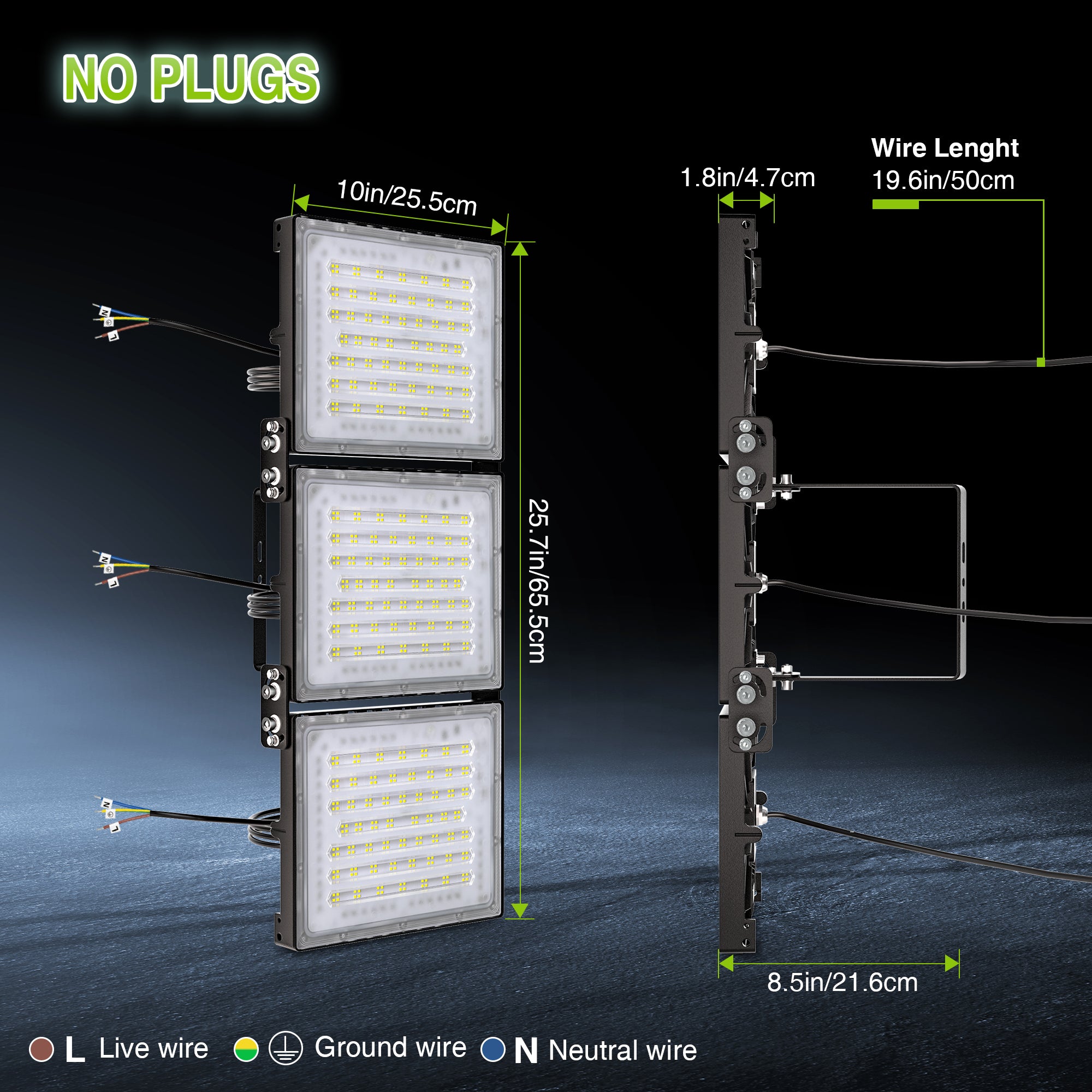 - Secure Hardwired Installation with Adjustable Mounting: This hardwired LED floodlight comes with a versatile U-shaped bracket, enabling wall, pole, or ceiling mounting. The sturdy adjustable bracket ensures precise lighting angles, making it an excellent choice for residential and commercial outdoor lighting needs